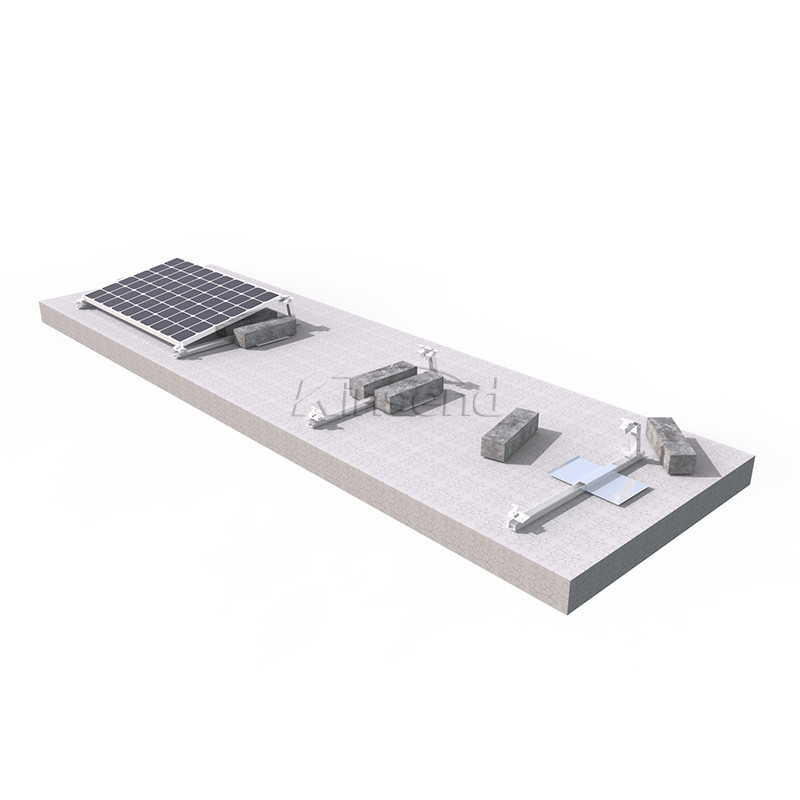 Le système de montage de toit plat sur trépied de ballast est un type de système de montage de panneau solaire conçu pour les toits plats. Ce système utilise une structure de trépied qui est lestée de ballasts pour fournir une base stable et sûre aux panneaux solaires. Le système de montage sur toit plat de trépied de ballast est relativement facile à installer et peut être fait rapidement, ce qui peut réduire le temps d'installation et les coûts de main-d'œuvre. Le système de montage sur toit plat à trépied de ballast est une solution efficace et efficiente pour les installations de panneaux solaires sur toit plat qui nécessitent stabilité et sécurité sans avoir besoin de pénétrer dans le toit.