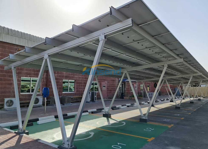 Dans le projet de carport nouvellement terminé à Dubaï, nous adoptons la Forme W. Conception de support en aluminium et la base de base concrète rend l'apparence plus concise et belle. Les types de Carports photovoltaïquessont divisés en deux parkings Carports et Multi-Parking Carports, dont la plupart sont des conceptions modulaires, qui peuvent être utilisées seules ou en combinaison pour une expansion facile Kinsend Se félicite de votre consultation de cas et vous fournit plus de conception services.