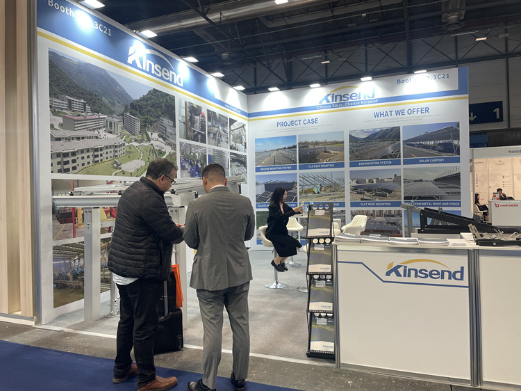 Kinsend Principal Vitrine Produit s Catégories pendant l'exposition : Diverses solutions de conception sont disponibles, notamment des supports de sol photovoltaïques, abris de voiture étanches , sol ZAM acier structure s , Système photovoltaïque à toit trapézoïdal , divers hameçons (type fixe, réglable) pour toits de tuiles , Une variété d'accessoires d'installation pour les systèmes de montage sur toiture commerciaux et résidentiels... etc...