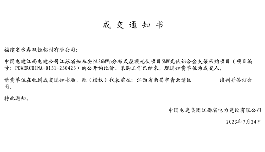 Voici l'avis d'autorisation de projet. Merci beaucoup pour la confiance et le soutien de China Power.