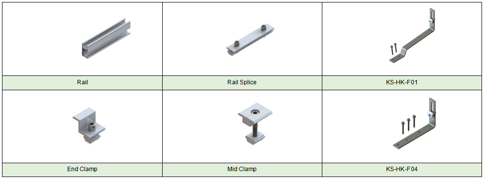 site d'installation toit de tuiles d'ardoise vitesse maximale du vent ≤60m / s charge de neige ≤1,4KN / M2 angle d'inclinaison 0 degré module applicable encadré ou sans cadre normes AS / NZS 1170, ASCE 7 - 10, JIS2017 Matériel AL6005 - T5, SUS304 Anti - corrosif Anodisé, galvanisé à chaud Couleur argent garantie 10 ans de garantie