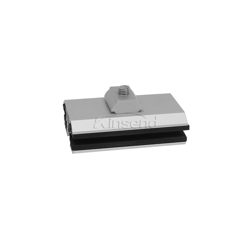 Le pince moyenne à film mince pour panneau solaireest en aluminium AL6005 - T5, combiné avec EPDM tampons, bien fixer le sans cadre panneau sur rails.