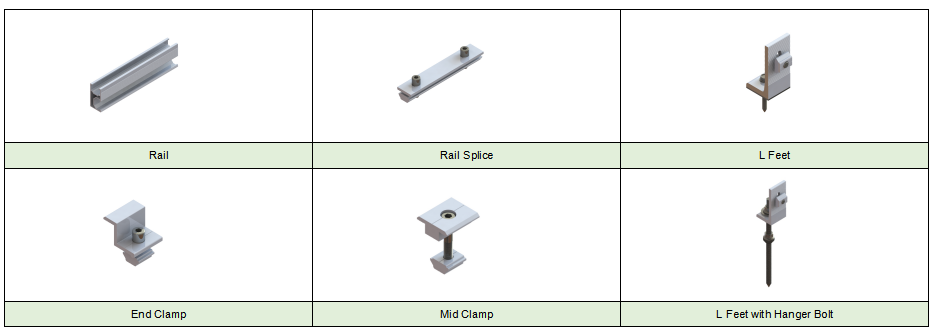 site d'installation Trapoziod / toit en tôle ondulée vitesse maximale du vent ≤60m / s charge de neige ≤1,4KN / M2 angle d'inclinaison 0 degré module applicable encadré ou sans cadre normes AS / NZS 1170, ASCE 7 - 10, JIS2017 Matériel AL6005 - T5, SUS304 Anti - corrosif anodisé Couleur argent garantie 10 ans de garantie
